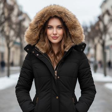Der Sofia Wintermantel mit Fellfutter vereint Stil, Komfort und Schutz in einem. Das taillierte Design betont die feminine Silhouette, während das weiche Innenfutter und die abnehmbare Kapuze selbst an kalten Tagen angenehme Wärme spenden.